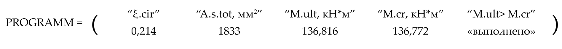 С помощью разработанных программ была решена задача, содержащаяся в приложении пособия к СП 63.13330, где выполнялась проверка прочности сечения при заданной арматуре 10Ø16 (As.tot = 2011 мм2).