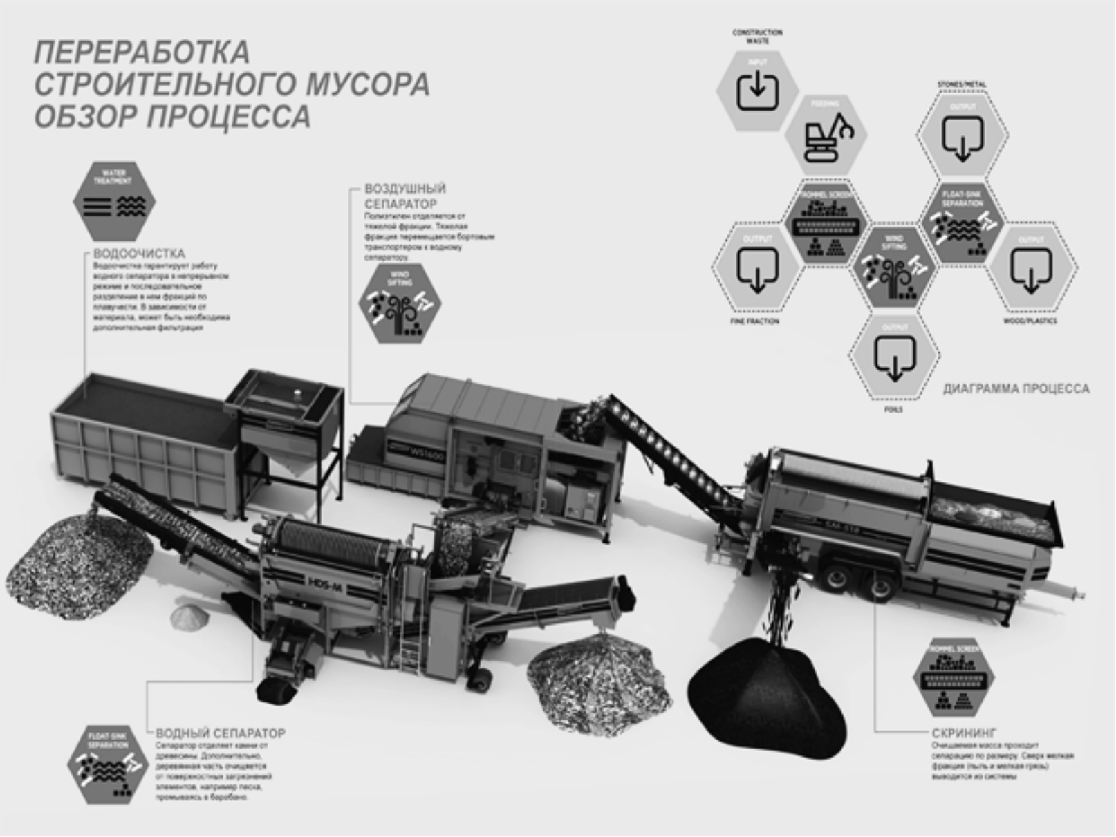 Рис. 1. Основные технологические этапы процесса переработка строительных отходов