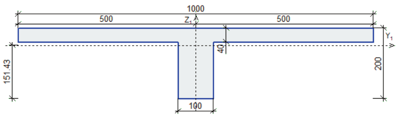 Таким образом, простой и наиболее точной моделью метода конечных элементов для изучения напряженно-деформированного состояния ребер кессонных конструкций при сравнении с аналитическим методом расчета, основанным на балочной аналогии, будет стержневая конечно-элементная модель. В связи с вышеизложенным можно сказать, что компьютерная модель представляет собой стержневую конструкцию, состоящую из балок таврового поперечного сечения. Высота балок200 мм, ширина ребра 100 мм, ширина полки тавра равна расстоянию между балками в осях, толщина полки 40 мм. Конструкция выполняется из бетона класса В20 в соответствии с примером расчета [18].Для учета ползучести бетона и его трещинообразования в соответствии с требованиями [27] начальный модуль упругости бетона умножался на коэффициент редуцирования 0,2для всех балок, как пролетных изгибаемых, так и опорных, по причине возникновения в них значительных крутящих моментов [23, 24].