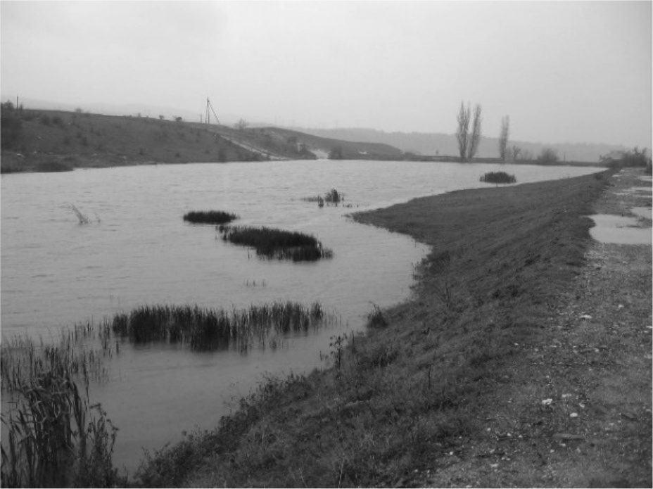Рис. 1. Пруд-накопитель для воды после промывки фильтров и продувки отстойников ВОС «Приятное свидание» [2]