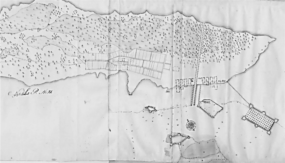 Рис. 4. План г. Кронштадта 1723 г. Источник изображения: Елагин С. И. Начало Кронштадта. Кронштадтский Вестник. 1866. № 1