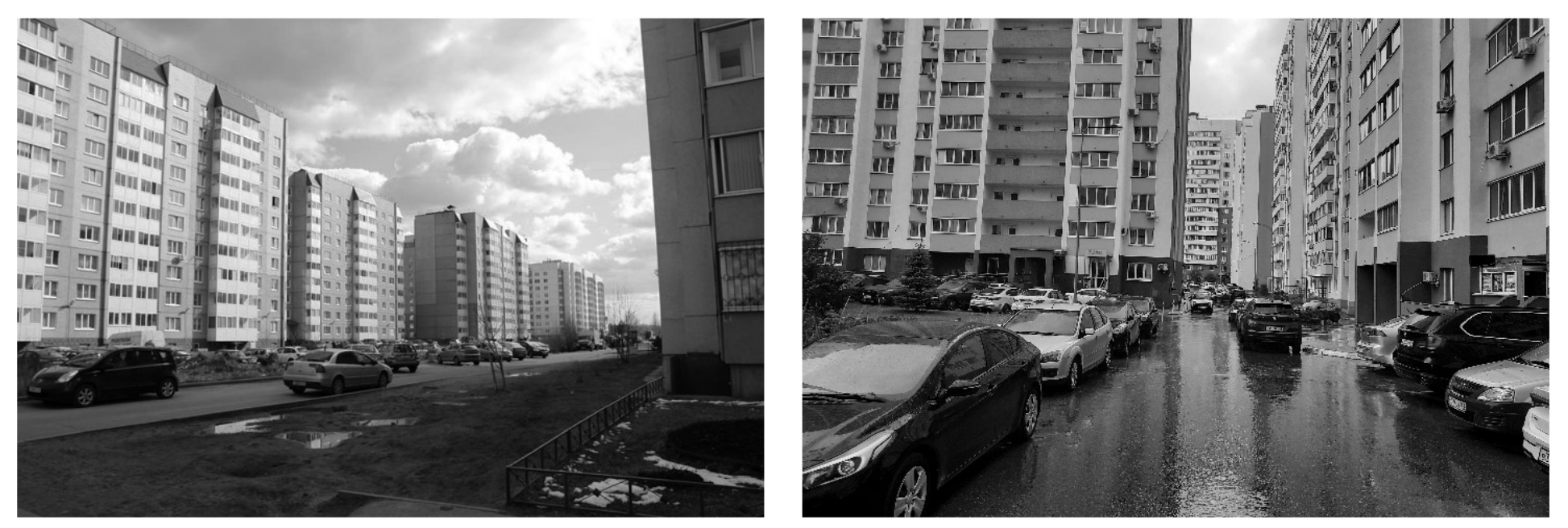 На придомовых территориях отсутствуют места для общения жителей, их отдыха, занятий физкультурой и спортом, за исключением детских площадок, которые в большинстве случаев имеют убогий вид и ограниченный состав элементов для игр и развлечений. Неудобно для жителей решены подходы к подъездам жилых домов. Недостаточно проработана и адаптирована среда для маломобильных групп населения. Из-за отсутствия крытых, в том числе подземных стоянок территории вокруг жилых домов превращаются в одну хаотичную большую парковку (рис. 3).