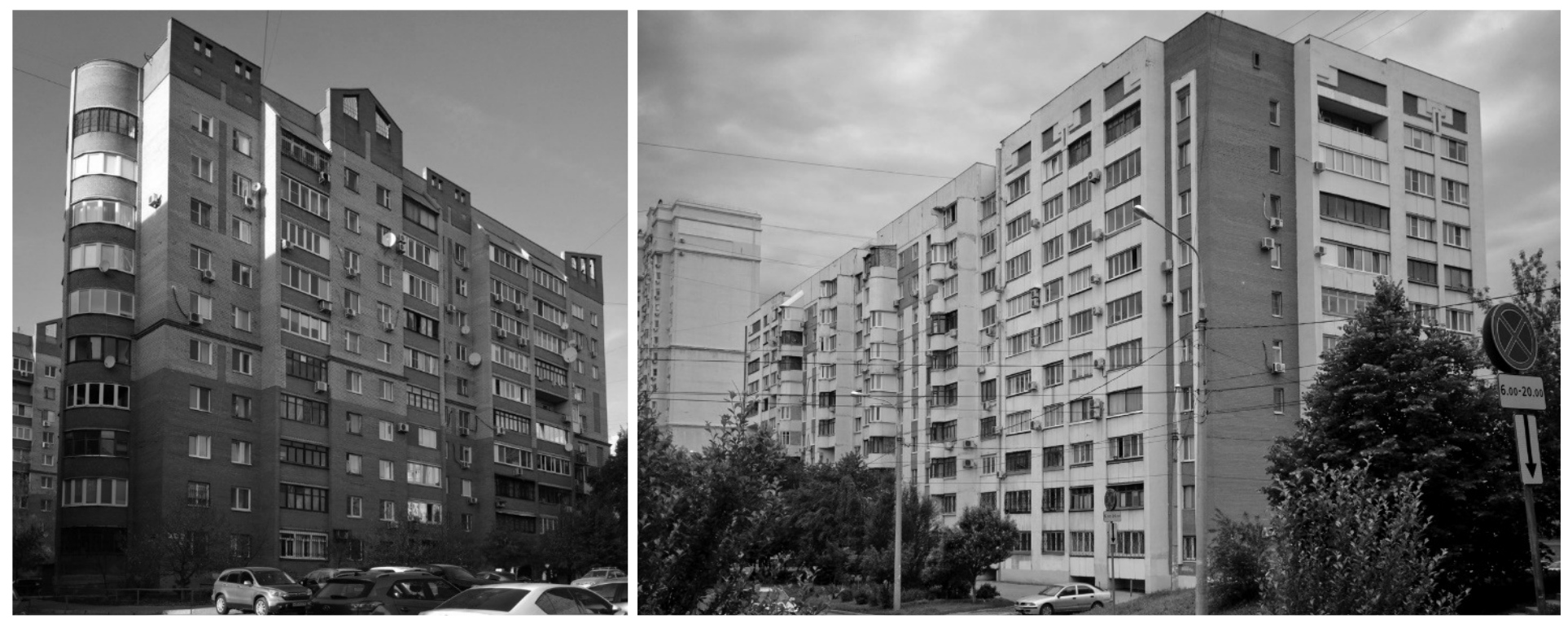 Для определения факторов, влияющих на класс жилья, его комфортность, авторами был проведен анализ разнообразных типов жилых домов, активно формирующих городскую застройку в последние годы. В первую очередь были рассмотрены многоквартирные жилые здания, мы их назовем «классического типа»: средней этажности (3-5 этажей), многоэтажные (6-10 этажей) и повышенной этажности (11-24 этажа). То есть такие, в которых объемно-планировочная структура состоит исключительно из квартир, независимо от количества комнат в квартире, общей площади, инженерных систем, оборудования и пр. Определяющим является лишь то, что в них отсутствуют объекты обслуживающего характера [13].