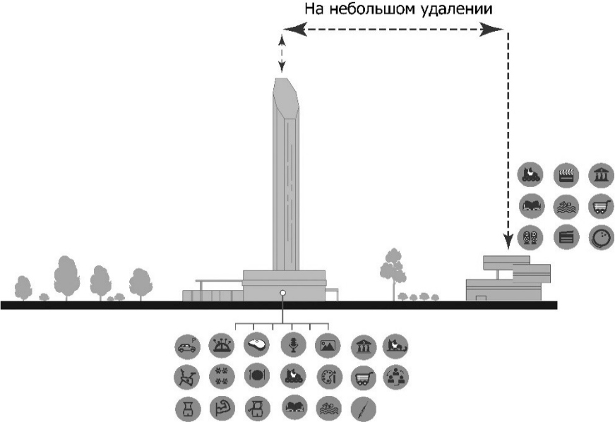 Рис. 8. Схема расположения элементов обслуживания в высотных зданиях и комплексах