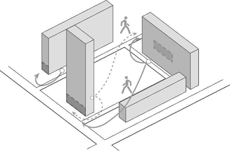 Рис. 6. Схема расположения элементов обслуживания в средне- и многоэтажной жилой застройке