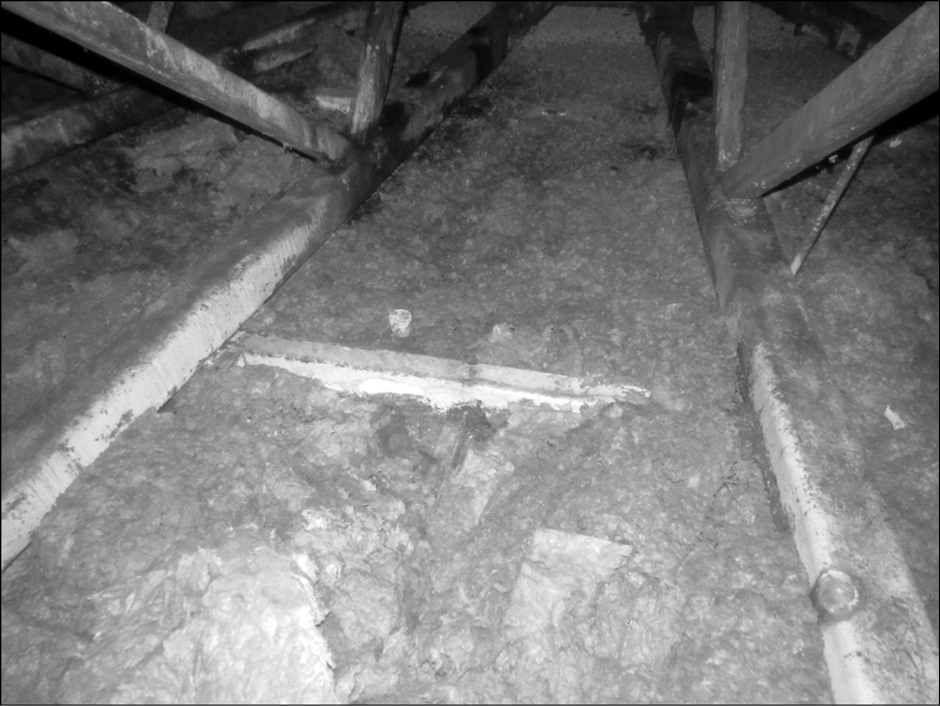 ▪ отсутствие пароизоляции со стороны внутренней поверхности утеплителя в чердачном перекрытии над технологическими помещениями, а также ветрозащиты со стороны чердака может привести к обильному замачиванию базальтовой минваты.