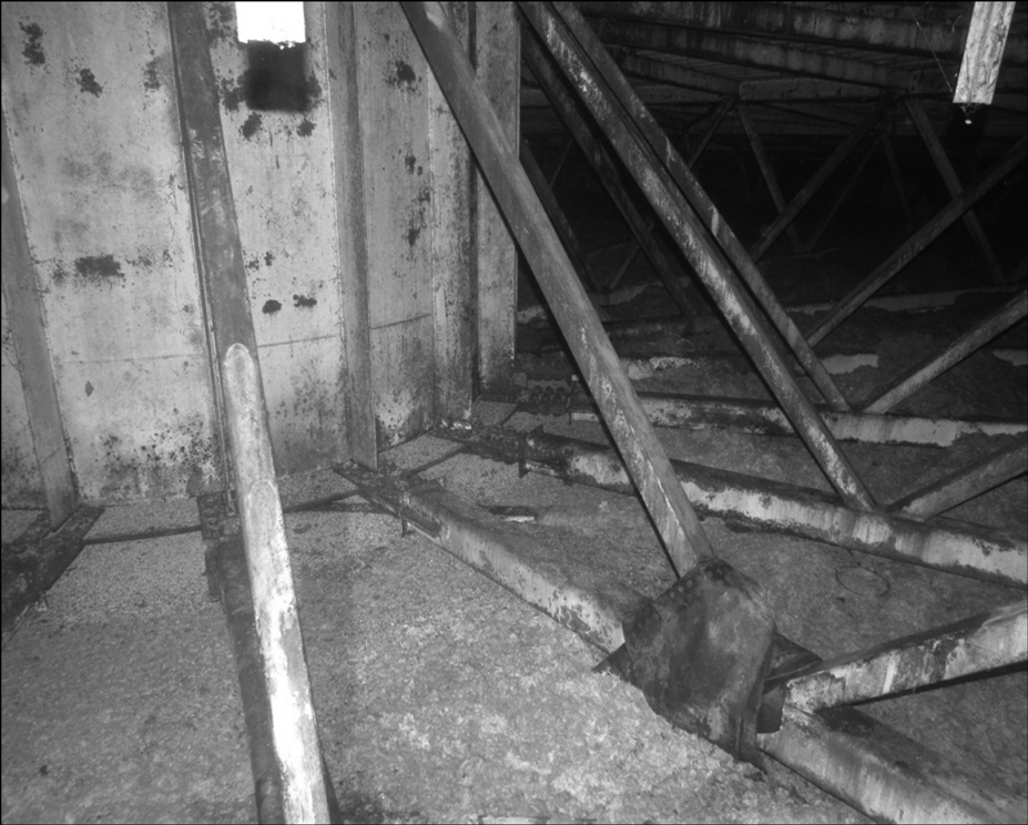 Рис. 2. Коррозия несущих элементов подвесного чердачного перекрытия над помещением сушильной камеры на участках их сопряжения между собой при помощи сварных швов