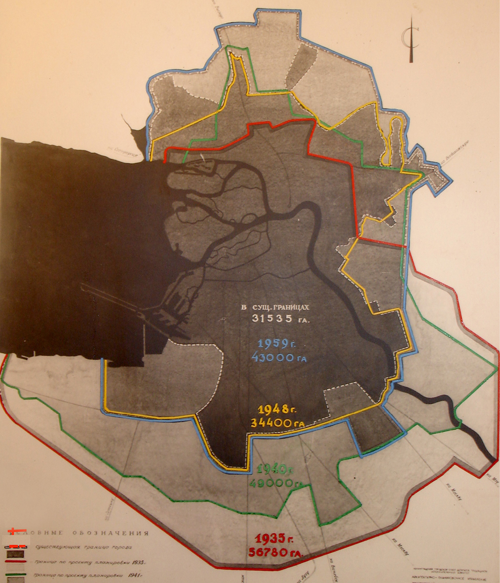 Изменения городских границ в послевоенных Генпланах Ленинграда: этапы экстенсивного развития города по новым направлениям