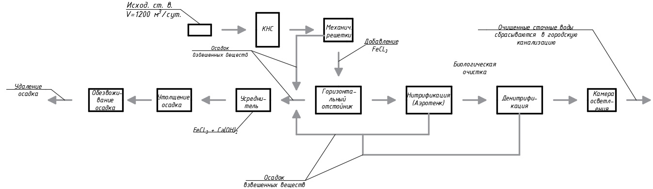 Блок-схема общей очистки сточных вод представлена на рис. 2.