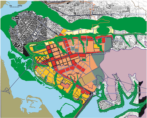 Планировочная сетка будет иметь характер клеточной структуры, или мозаики, в которой возможно учесть случайные объекты с последующим выправлением ее конфигурации в пользу указанных принципов устойчивого развития города: ландшафтосообразности, преемственности, разграничения публичных и приватных морфотипов, упорядоченности.