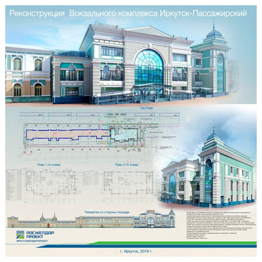 Рис. 17. Принципы преемственности в последовательном формировании зданий вокзала Иркутск-Пассажирский. Росжелдорпроект, 2019 г.