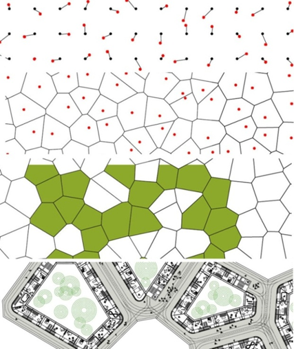 Fig. 20. G.F. Voronoi’s pattern in a competitive district planning project in Kemi, Finland, 2014