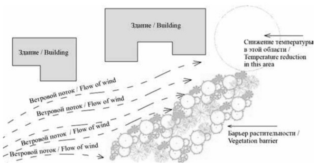 5. Рис. 4. Ландшафт и здания служат барьером для ветра [10]