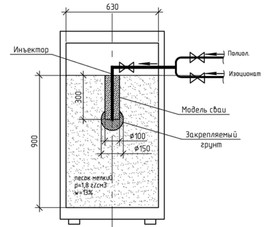 Авторы в своей экспериментальной работе исследовали на физических моделях особенности рассматриваемых материалов и дали оценку возможности применения расширяющихся смол при закреплении грунта под нижним концом буровой сваи.