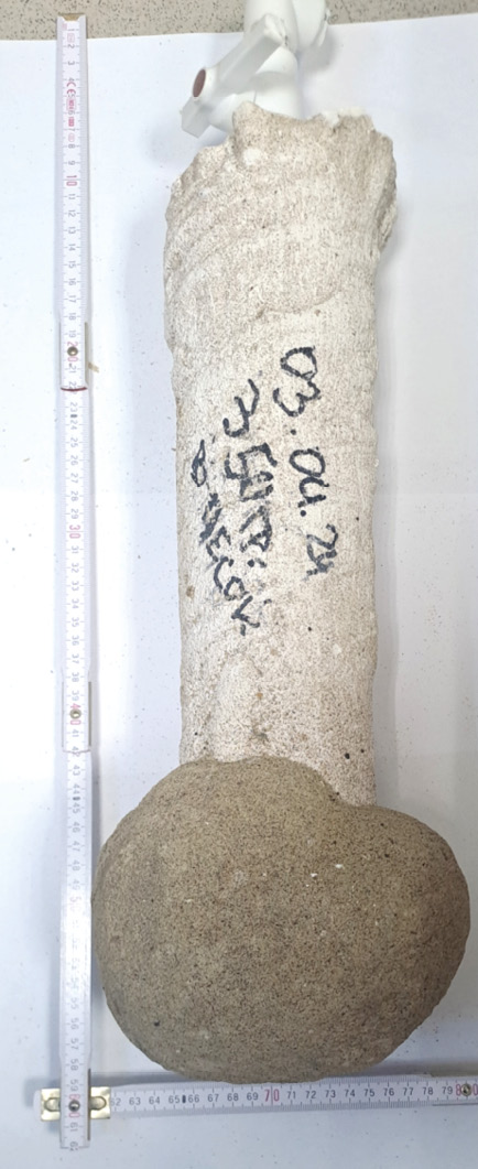 Fig. 4. Model of a pile with a soil-polymer broadening, in the construction of which 550 g of resin was used