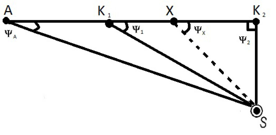 Наиболее значительным отечественным исследованием является работа А. Ромма «Метод построения пешеходной системы жилого комплекса». В ней приведены многочисленные факты, влияющие на поведение пешехода при его движении к цели. Были введены понятия «контрольный угол» и «критическое значение контрольного угла». Под контрольным углом понимается угол ϕ между направлением движения пешехода и направлением на цель в каждый момент движения: AN ‒ направление движения пешехода; АS ‒ направление на цель (рис. 1).