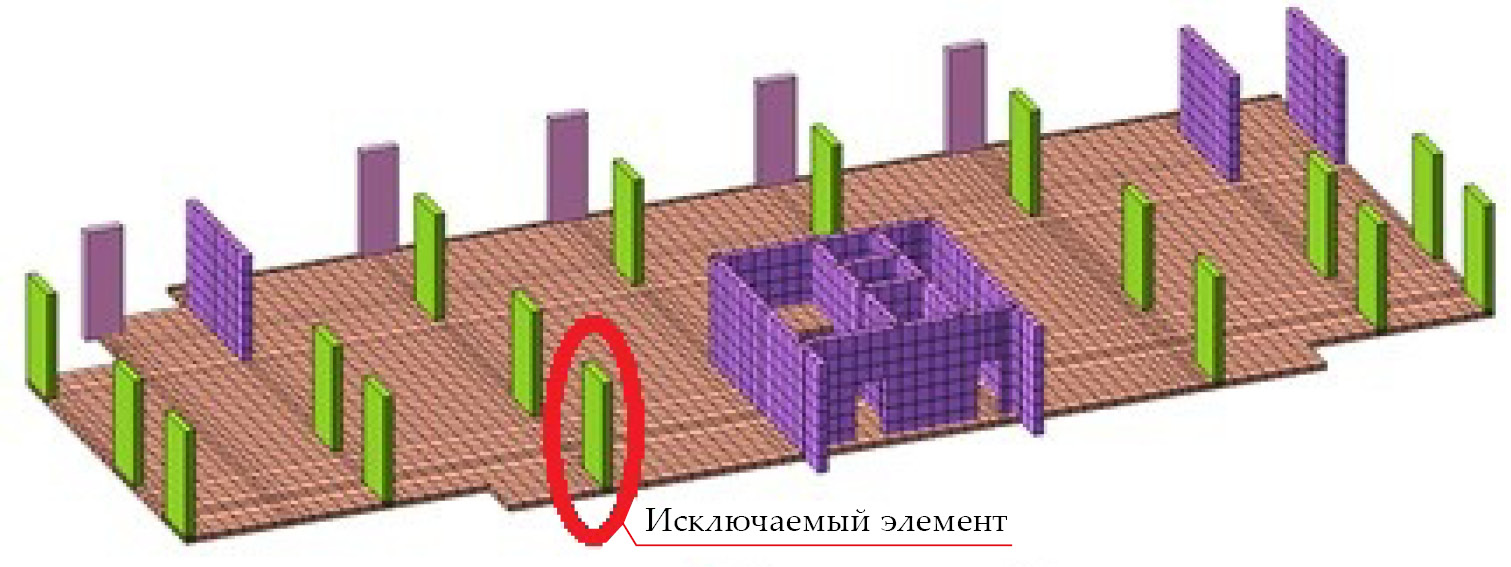 Рис. 4. Элемент, исключаемый при расчете на прогрессирующее обрушение