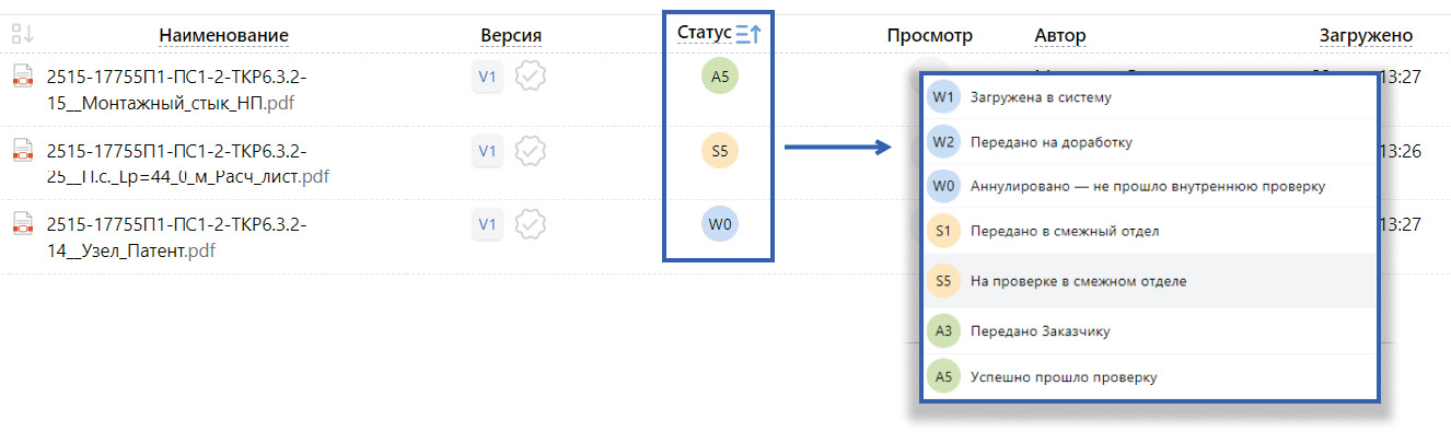 Каждая система СОД на российском рынке так или иначе позволяет работать со статусами версий документов.