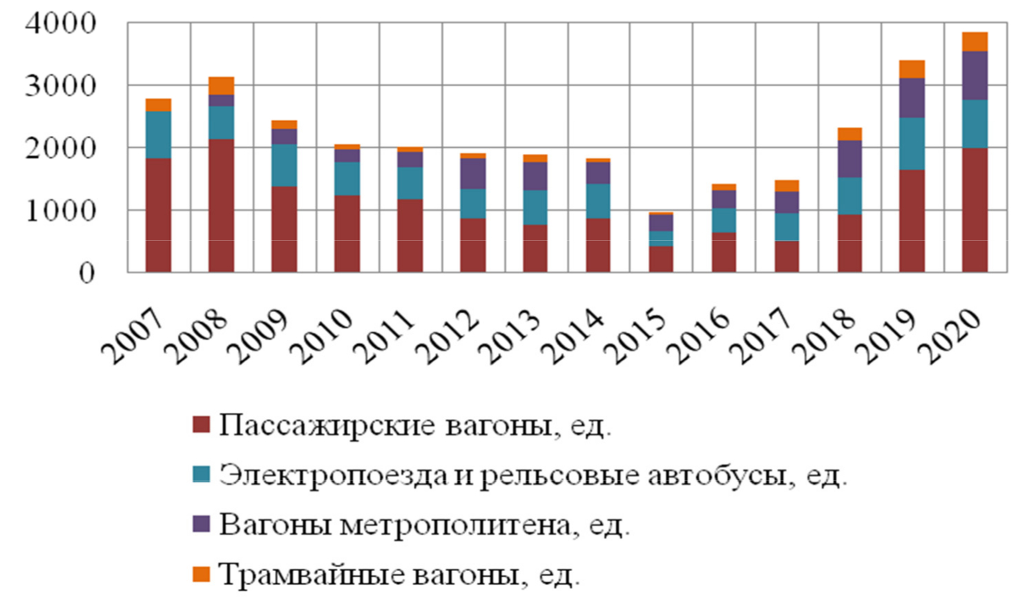 Анализируя активность внешней торговли ПОТМ за последние пять лет, стоит отметить значительное снижение экспортных продаж подвижного состава. Для информации: общий объем экспорта в 2021 г. составил около 1 % от общемирового объема экспорта продукции ПОТМ. В 2020–2021 гг. внешняя торговля России перешла к локальному росту. Развитие торговых связей со странами СНГ и Китаем является в настоящее время более перспективным направлением.