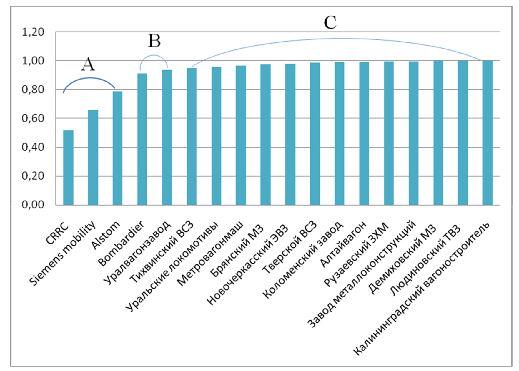 Несмотря на то что российская компания «Трансмашхолдинг» вошла в топ лидеров зарубежного рынка транспортного машиностроения, большая его доля все же принадлежит иностранным производителям (более 90 % рынка): Alstom, CRRC и Siemens – крупнейшие игроки.