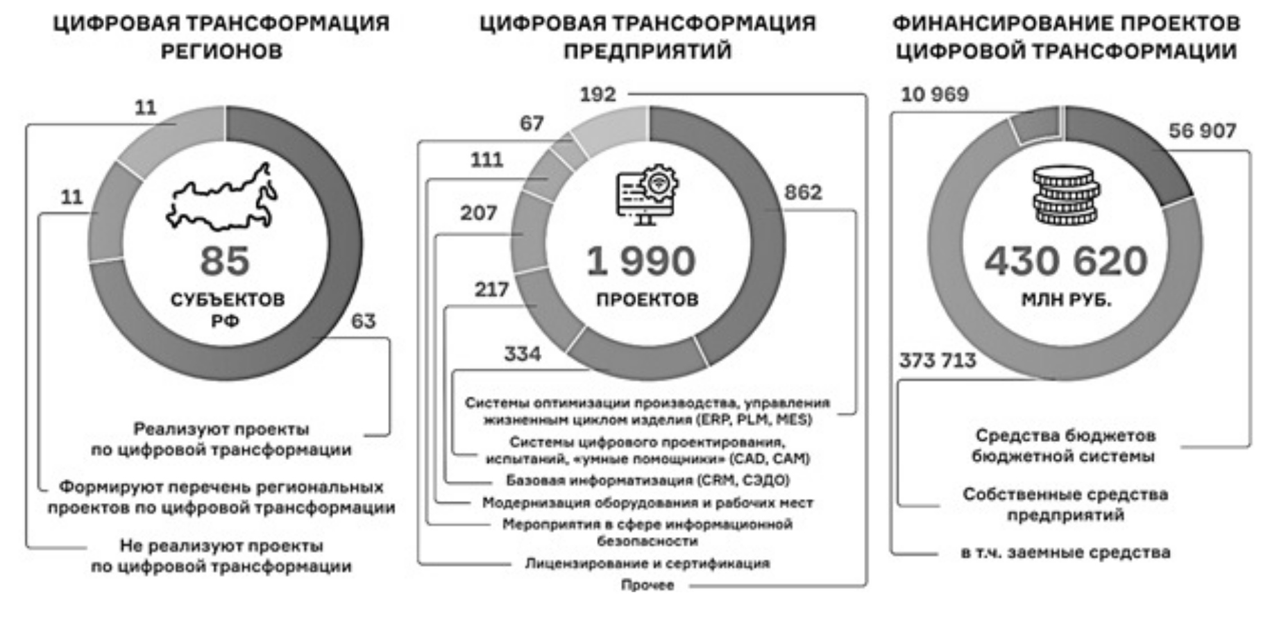 Рисунок 3: Мониторинг региональных и отраслевых проектов по цифровой трансформации предприятий промышленности [2]