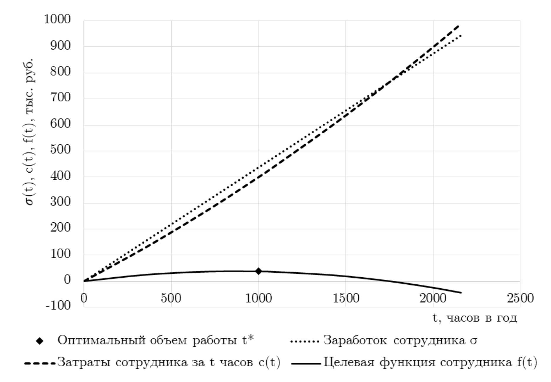 Рис. 2: Графическая интерпретация оптимального времени работы сотрудника.