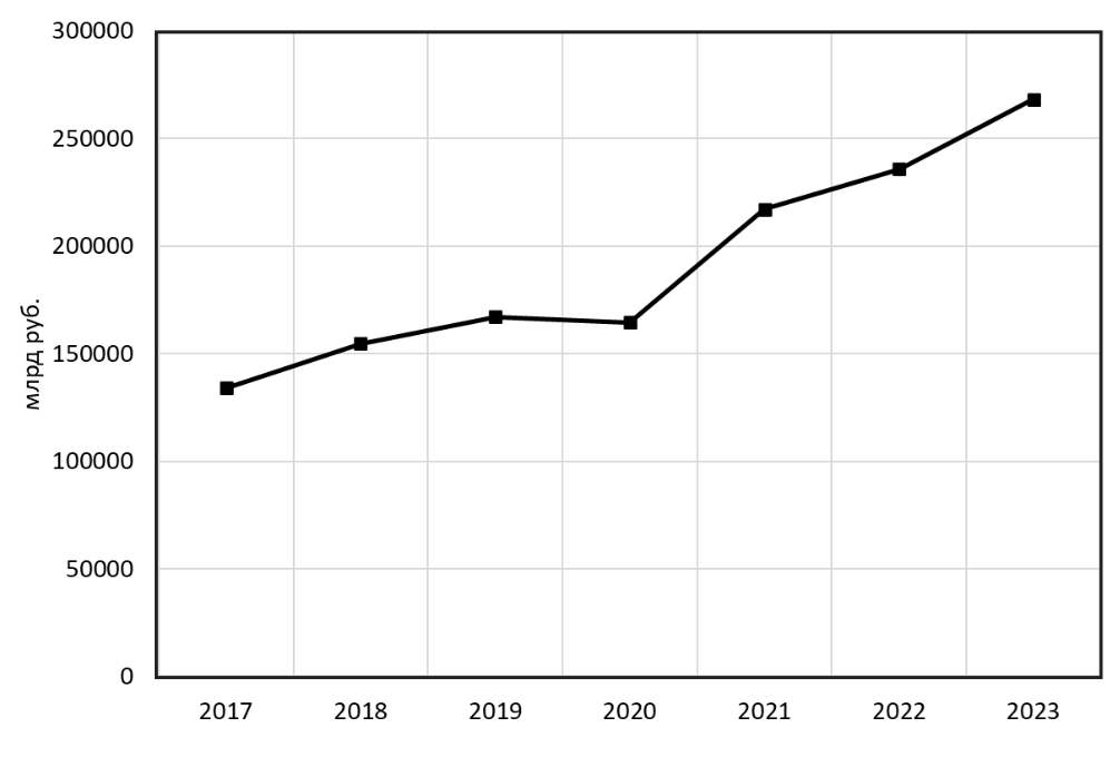 Рассмотрим показатель оборота организаций Российской Федерации за 2017-2023 гг. и проанализируем отдельные отрасли.
