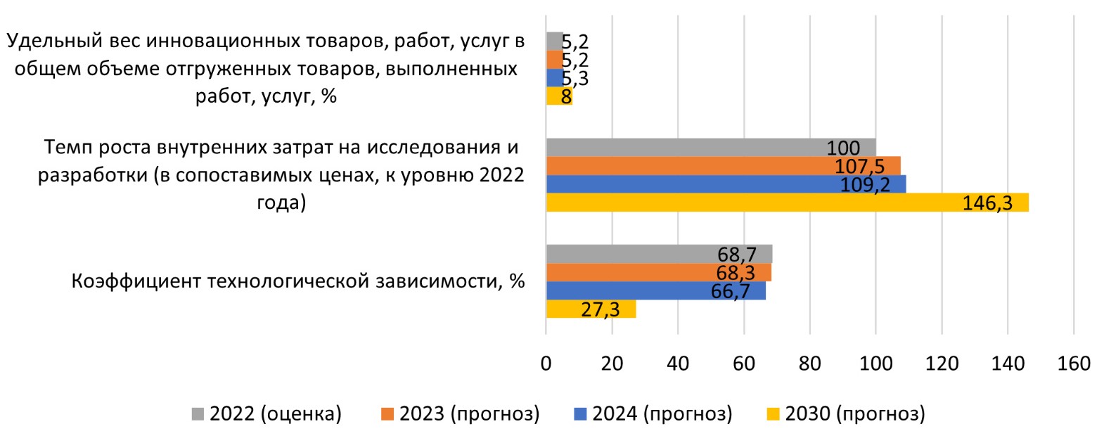 Для обеспечения развития инновационной деятельности должен быть обеспечен к 2030 году прирост затрат на ее осуществление на 53.1%.