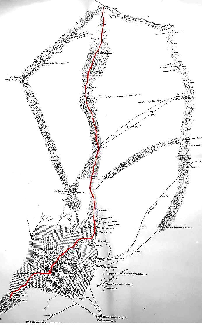 Рис. 2. Карта следования поручика Назирова. Источник: [4]