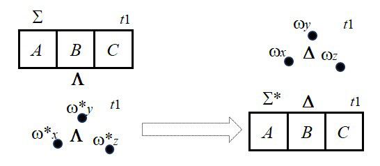 Адаптируя требования ГС1 к объектам, населяющим домены миров W и W*, мы получаем следующего вида модальное утверждение: