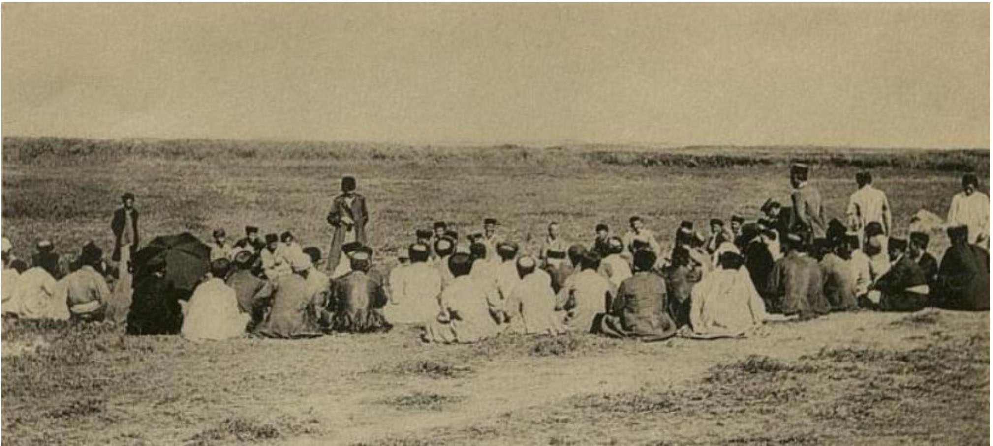 Рис. 3. Сход старшин по вопросу об укреплении песков. Астраханская губерния. 1909 г. [Работы по укреплению 1910: Таблица V].