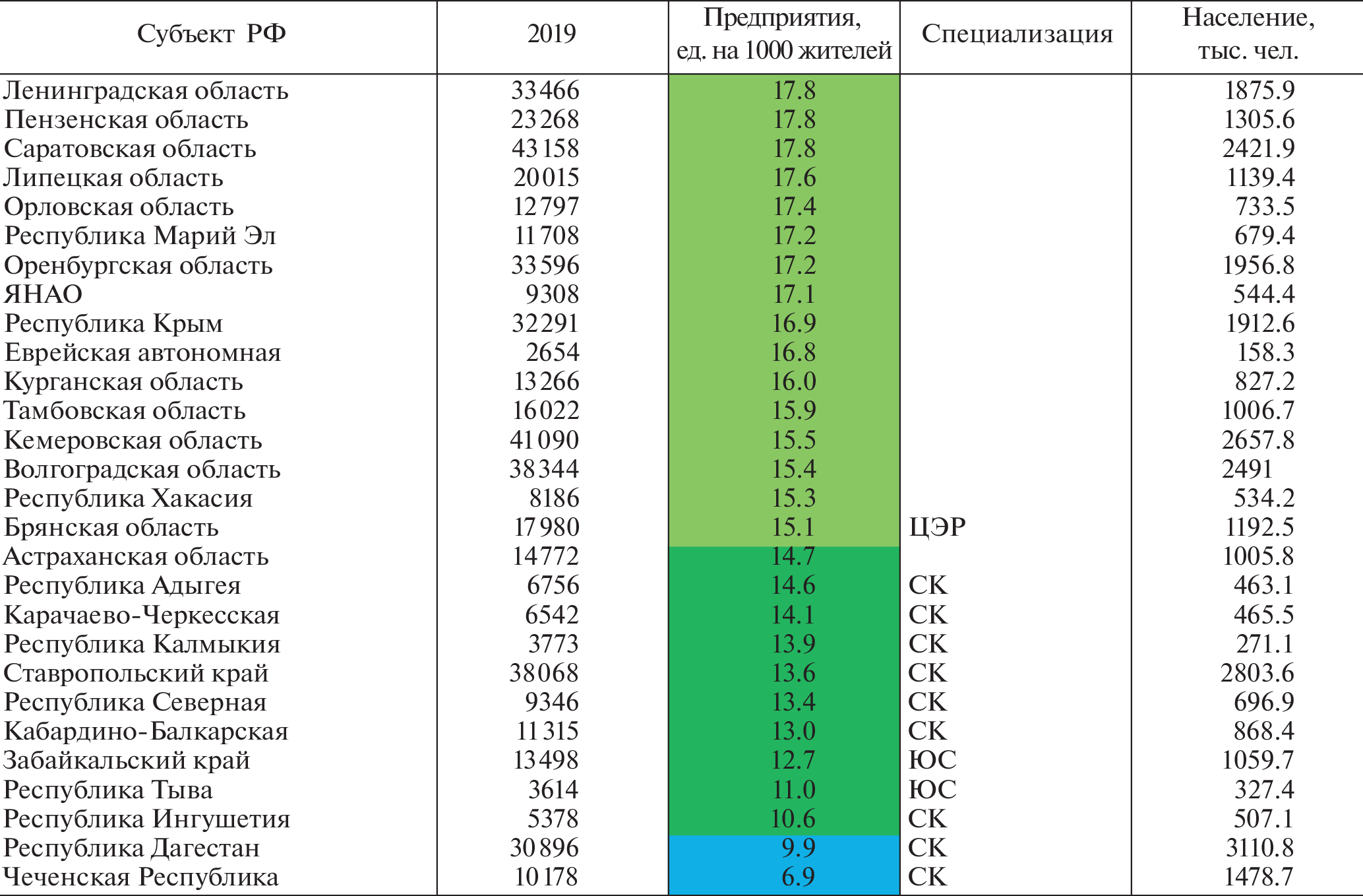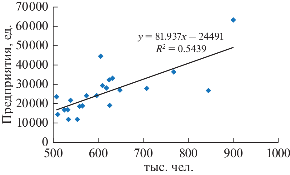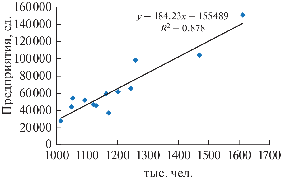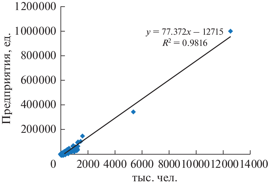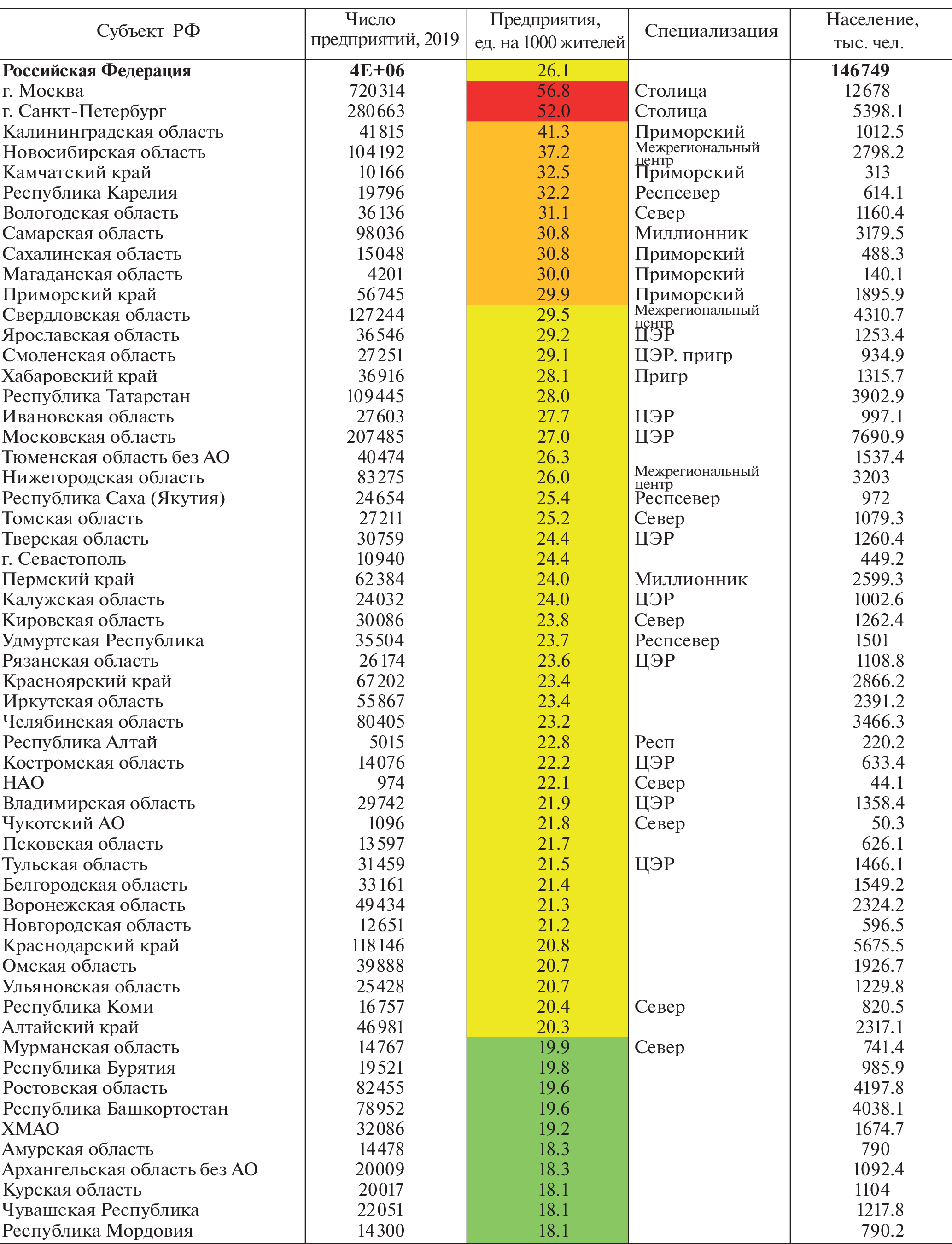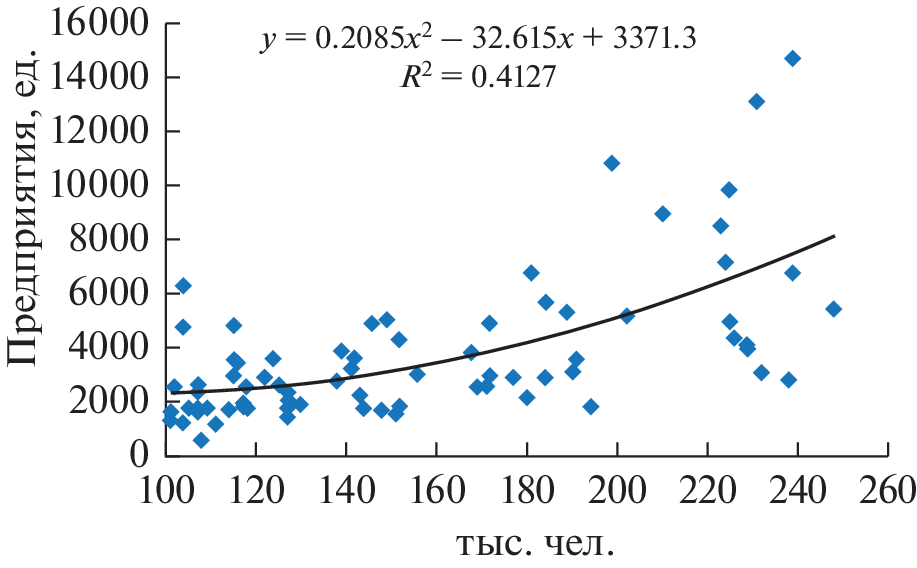 The article deals with the problems of the relationship between the agglomeration effects of localization and urbanization. As an indicator of these processes, the relationship between the population of cities and the number of enterprises and organizations in them is used. It is assumed that the number of enterprises indirectly reflects the diversity of places of employment, although not weighted by industry structure. As a result of the study, a statistically significant relationship between these two indicators was established both for the subjects of the federation and for cities with a population of more than 100 thousand people. The main focus is on the study and explanation of deviations from the general pattern of the rank of the city/the number of enterprises in it. On this basis, the typology of cities is carried out on several grounds: administrative status, economic and geographical location, the presence of large city-forming enterprises. According to the results of the study, specific parametric characteristics were identified that allow us to distinguish single-industry cities. Using the example of the key, the study was continued for settlements with less population, as a result, it was found that for them, geographical location and specialization are more important than population.