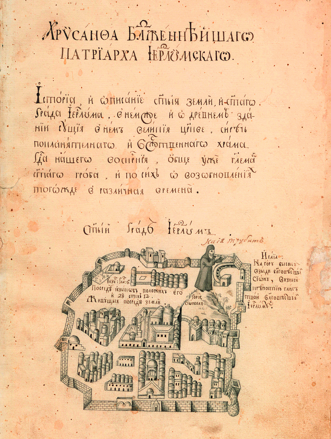 Ил. 2. План Иерусалима из сочинения Хрисанфа Нотары «История и описание Святой Земли и Святого Града Иерусалима». ОР РНБ. Ф. 588 (М. П. Погодин). Оп. 3. № 1546. Л. 1