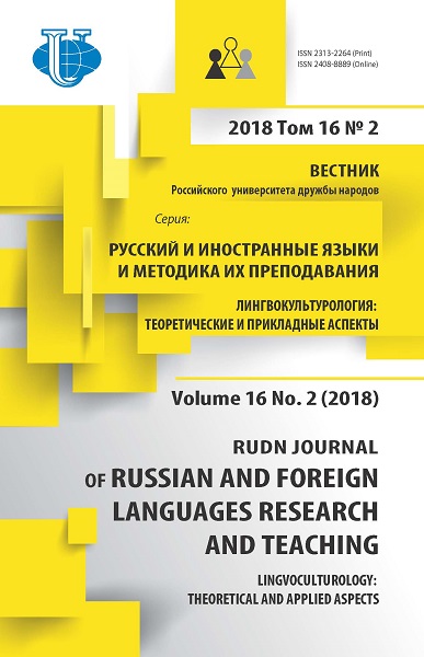 Том 16, № 2 (2018): ЛИНГВОКУЛЬТУРОЛОГИЯ: ТЕОРЕТИЧЕСКИЕ И ПРИКЛАДНЫЕ АСПЕКТЫ