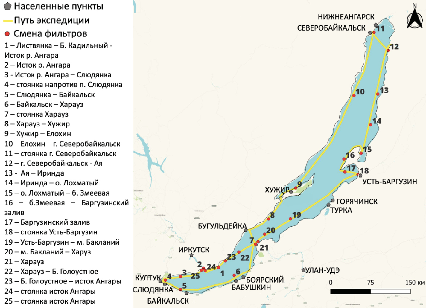 2. Fig.1. Schematic map of the RV “G.Yu. Vereshchagin” route throughout the water area of Lake Baikal (5–15 August 2023).