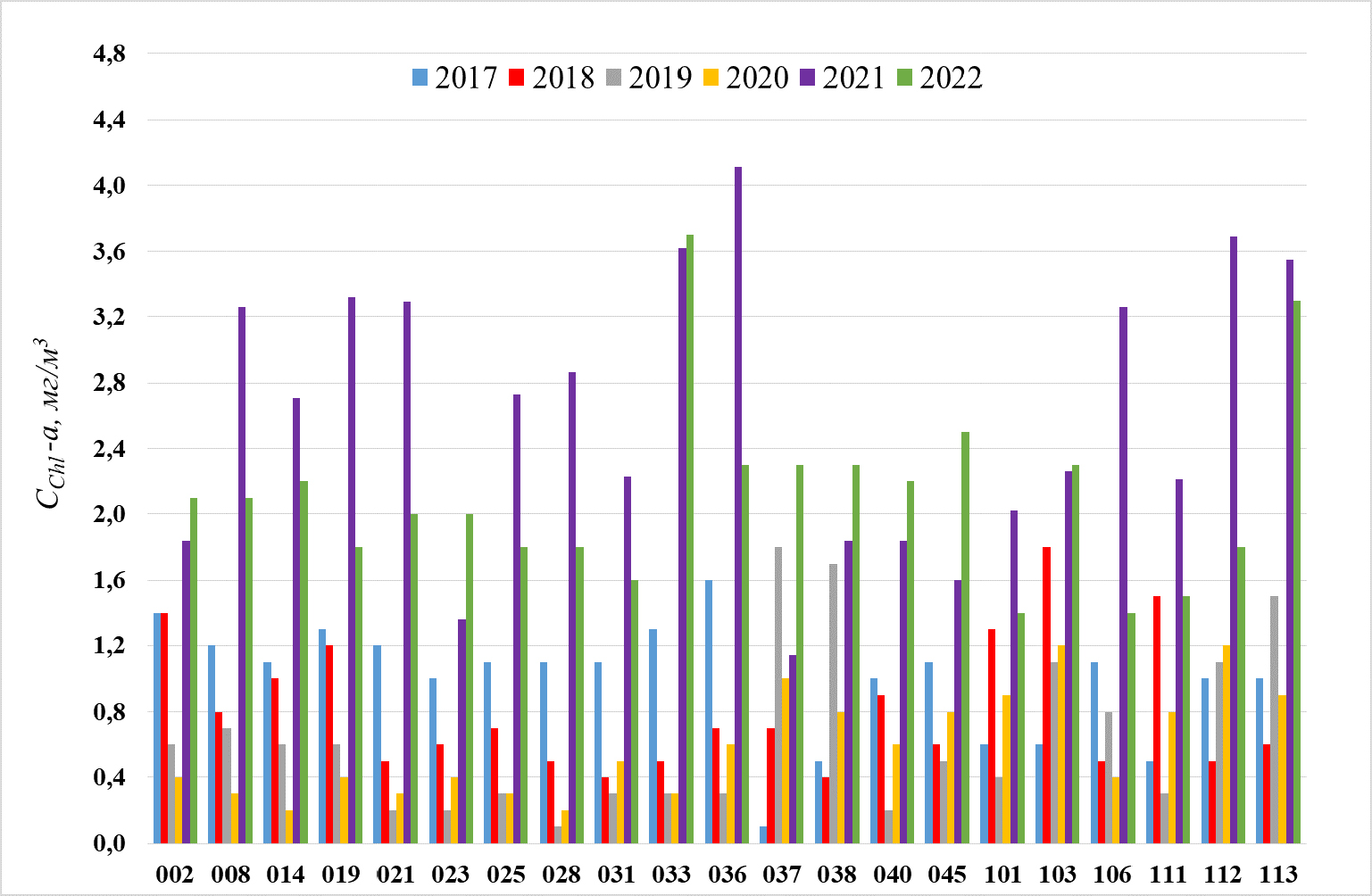 The concentrations of chlorophyll CChl were determined by a standard spectrophotometric method according to (GOST, 2003).