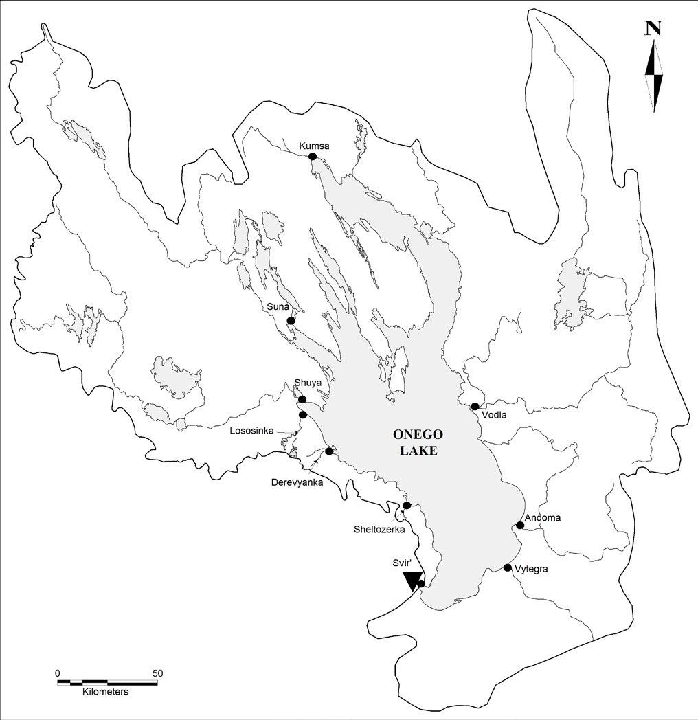 Fig. Schematic map of Lake Onego with sampling points