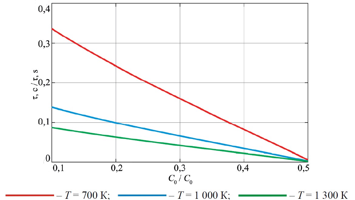 Рис. 2. Зависимость времени периода пульсации от начальной концентрации