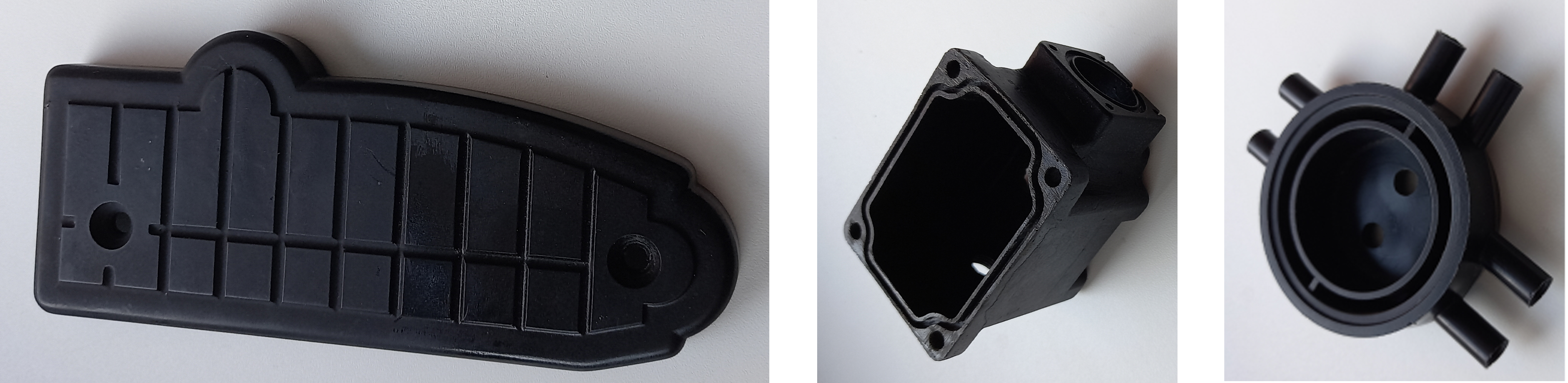 Fig. 5. 3D printed prototypes: a) hydraulic distributor cover; b) electronic unit housing; c) milking machine vacuum dispenser housing