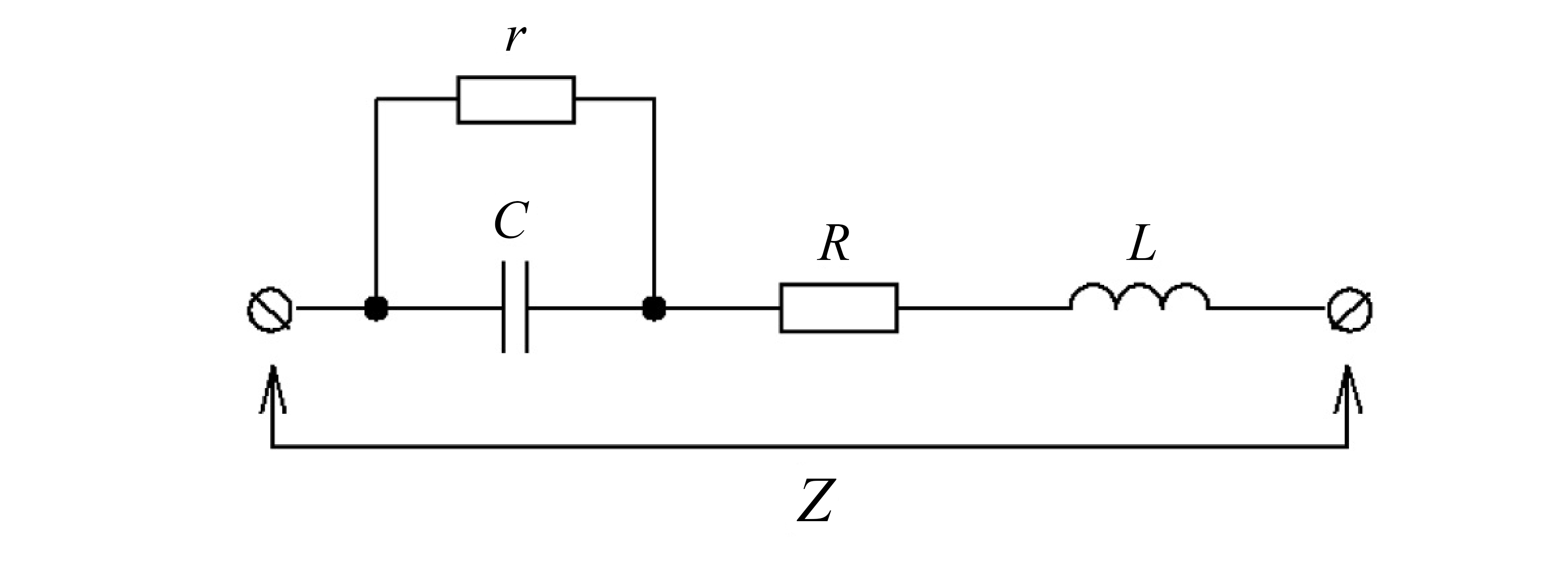 Р и с. 1. Схема измерения электрических параметров АТ: Z – импеданс; С – собственно емкость; r – сопротивление через жидкость (определяет ток утечки); R – паразитное последовательное сопротивление; L – паразитная последовательная индуктивность