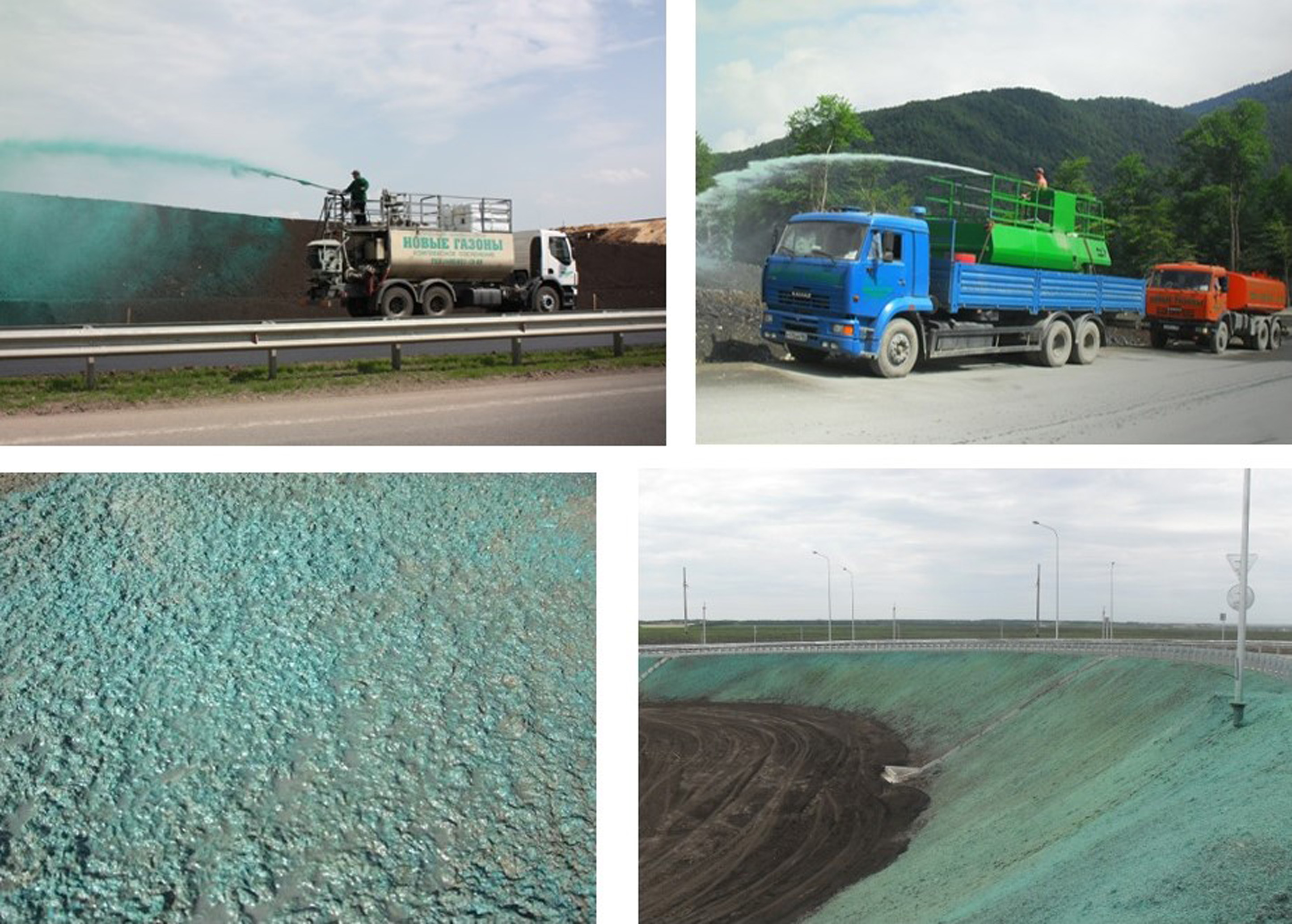 Обзор литературы. Термином «гидропосев» в настоящее время обозначается способ посева травы для газонов и склонов. При таком методе применяется смесь, в которую входят семена, мульчирующий материал, краситель и другие элементы (рис. 1)1.