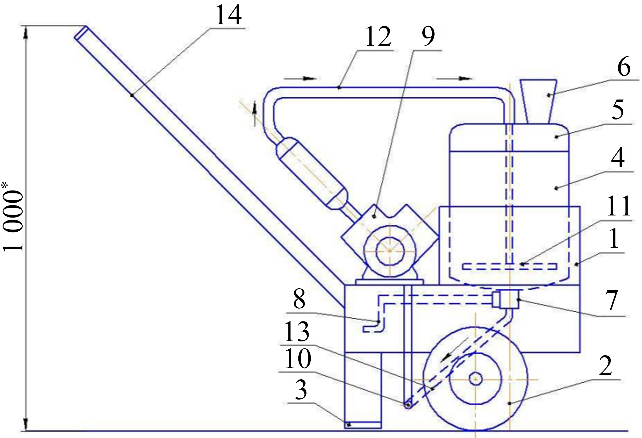 Рассмотрим технологические решения для гидропосеве мелкосемянных культур. Гидросеялка СТР-2 (рис. 3), в которой взвешенное состояние семян обеспечивается механической и пневматической мешалками, предназначена для осуществления посева в теплицах [3–6].