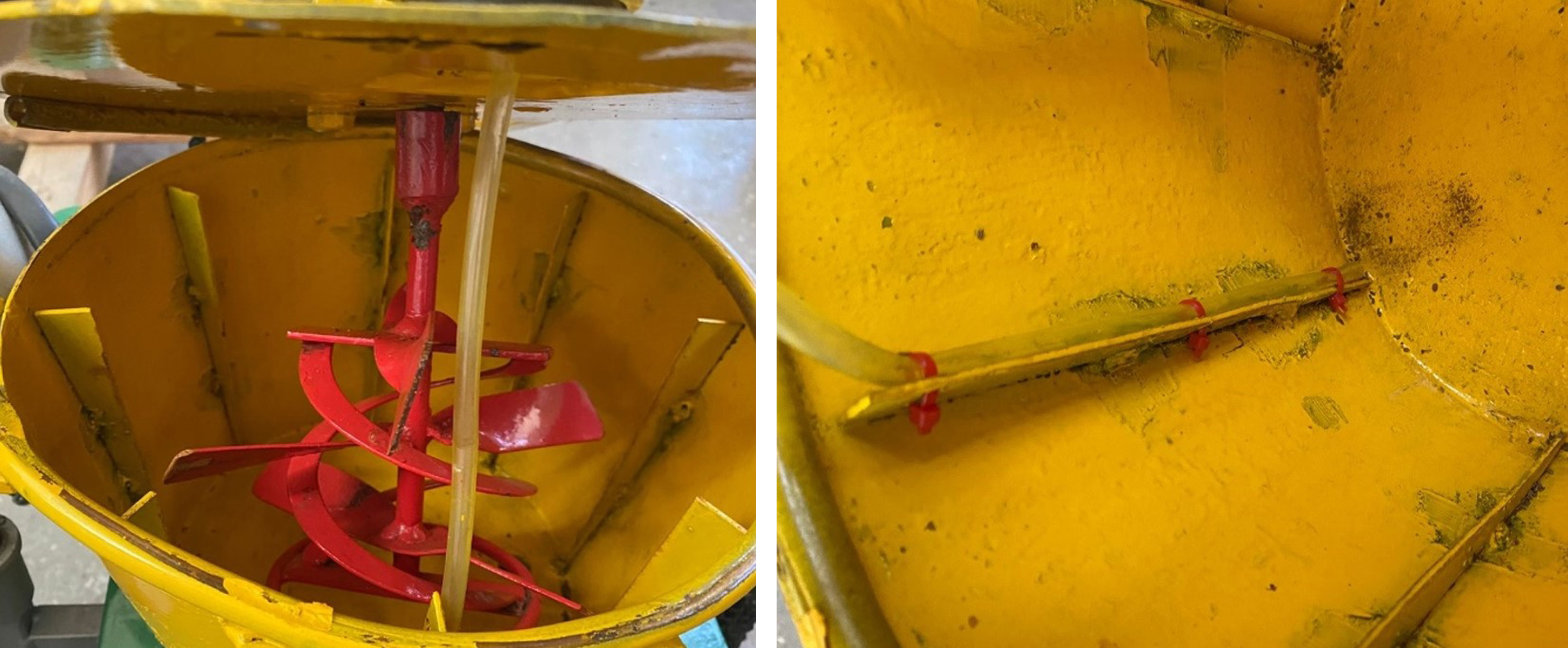 Гидравлическая сеялка [9] снабжена механической мешалкой с П-образными перемешивающими элементами для равномерного распределения семян в воде при небольшой частоте вращения.