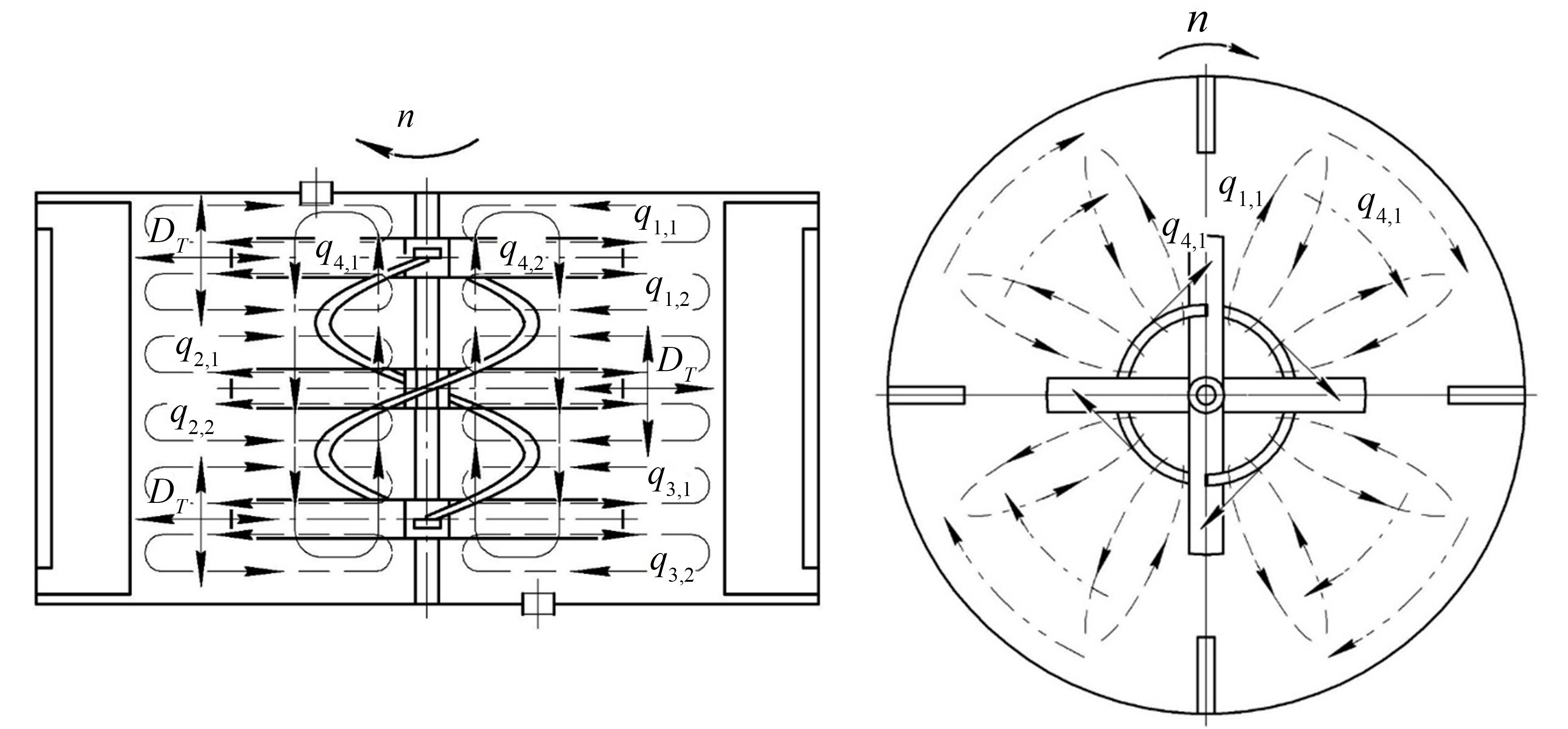 Разработанная конструктивно-технологическая схема резервуара для формирования посевной смеси мелкосемянных культур (рис. 13) предусматривает работу в двух режимах. В первом режиме в резервуар заливается жидкая среда и засыпаются семена, затем включается привод мешалки и в резервуаре создается гомогенная концентрация смеси семян и жидкой среды. Во втором режиме начинается рабочий ход сеялки, одновременно с которым открывается дозирующее устройство и производится высев семян. Таким образом, в первом режиме работы необходимо определить параметры действия перемешивающего устройства для создания гомогенно-концентрированной смеси.