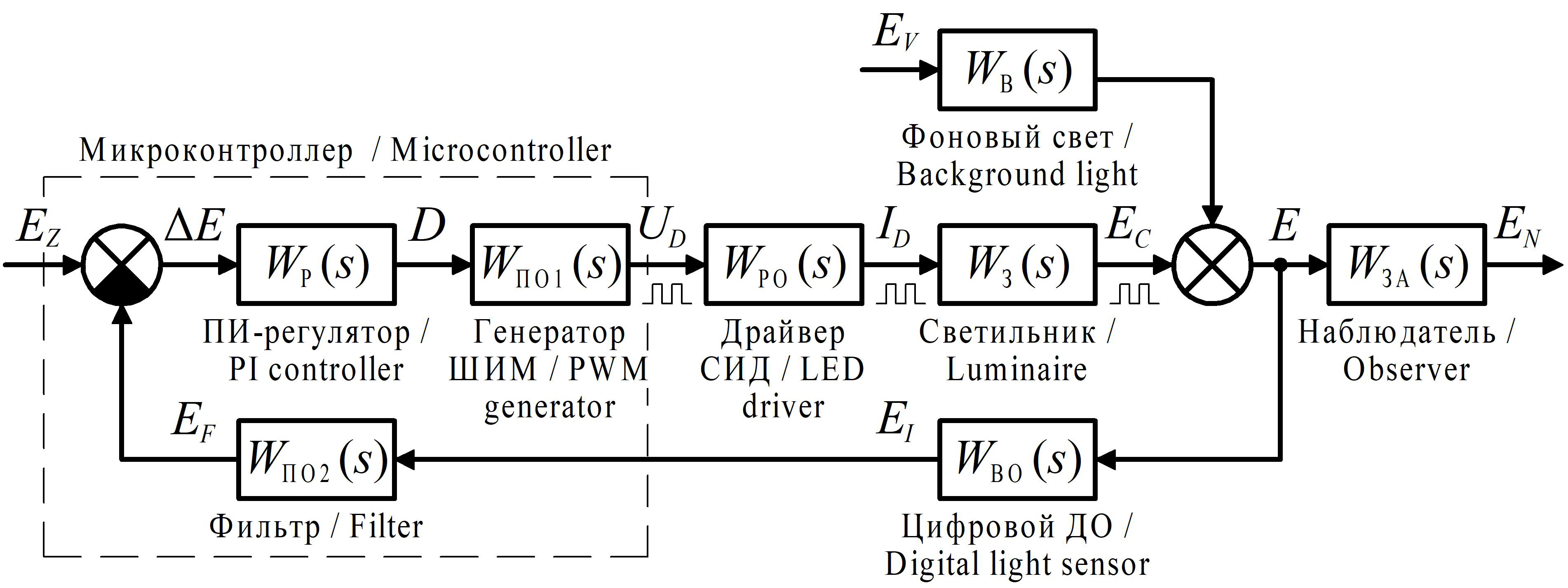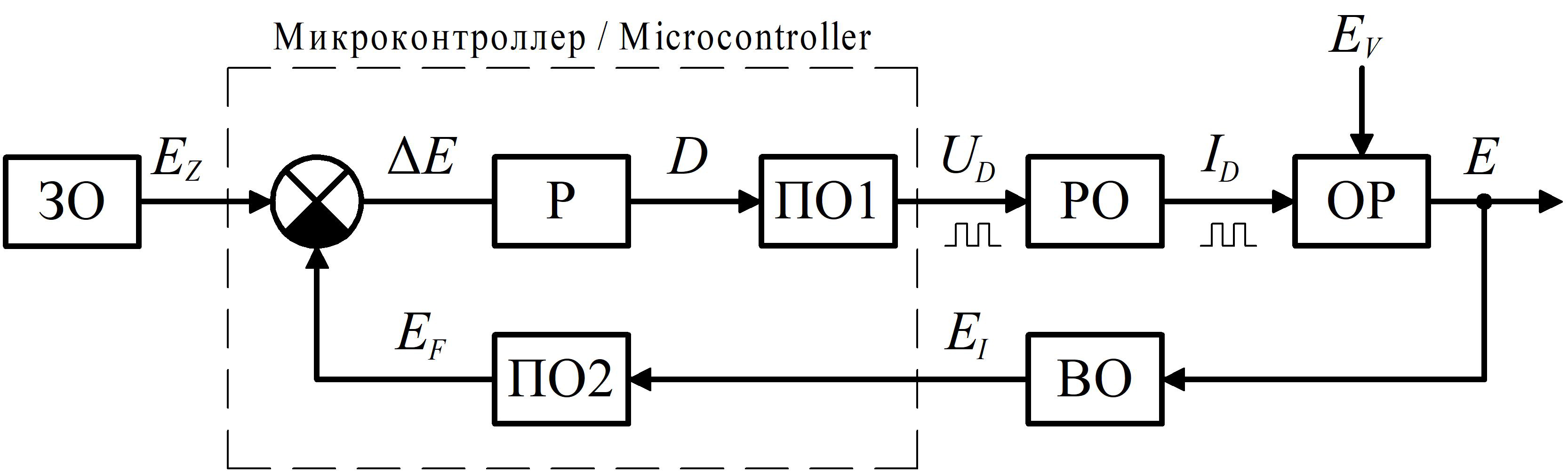 Р и с. 2. Функциональная схема цифровой САР освещенности