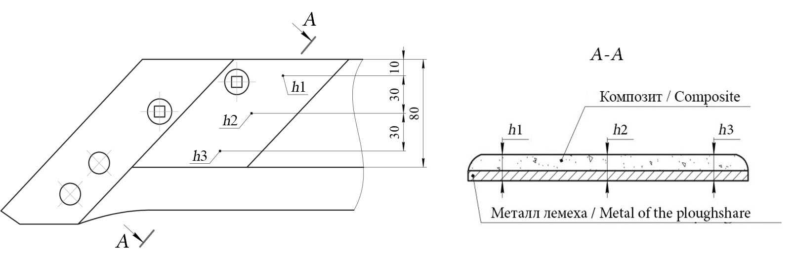 В последние годы в технической литературе все больше внимания уделяется использованию современных материалов с высокими антиабразивными свойствами для восстановления и упрочнения рабочих поверхностей деталей сельскохозяйственных орудий1 [12]. При этом особый интерес представляют композиты на основе эпоксидного компаунда с добавлением дисперсного наполнителя природного происхождения, например, гравийной крошки [13]. Исследования показывают, что такие материалы имеют высокий потенциал для использования в почвенных условиях. Однако эксперименты проводились на отвалах плужных корпусов, а эти детали испытывают наименьшую нагрузку по сравнению с лемехами [14; 15].