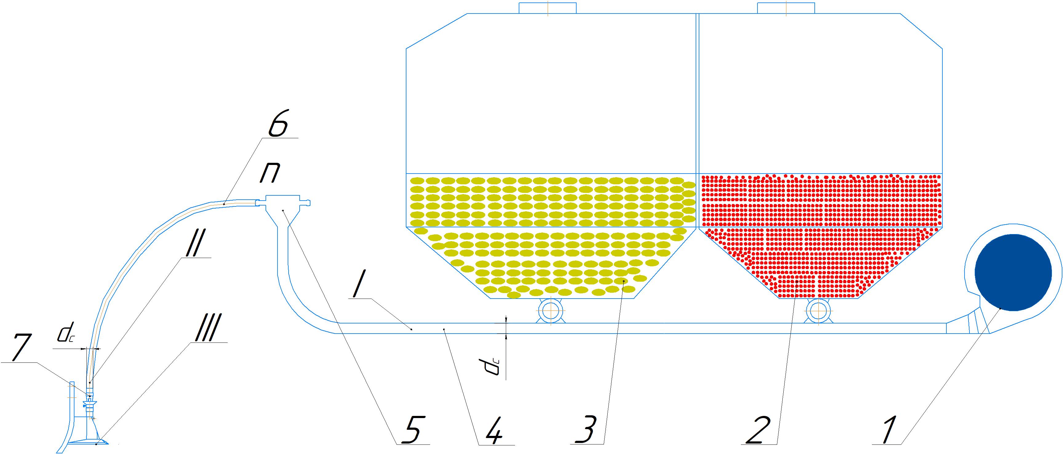 где vg – скорость воздушного потока в вертикальных трубах, м/с; vвит – средняя скорость витания гранул удобрений, м/с; kз = 1,2…1,5 – коэффициент запаса.