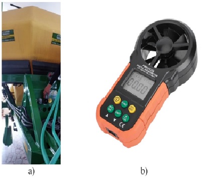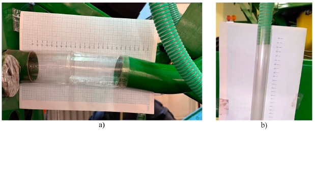 Fig. 2. Petkus sailing classifier: a) measurement of air flow with fertilizer supply; b) measuring the air flow at the inlet without applying fertilizers