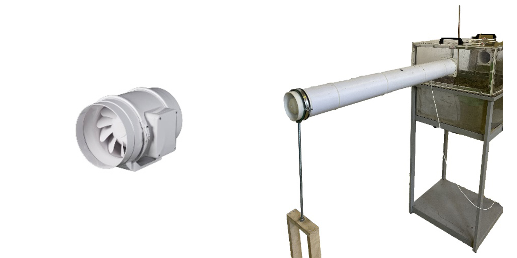 Рис. 3. Приточный воздуховод и вмонтированный в него регулируемый вентилятор