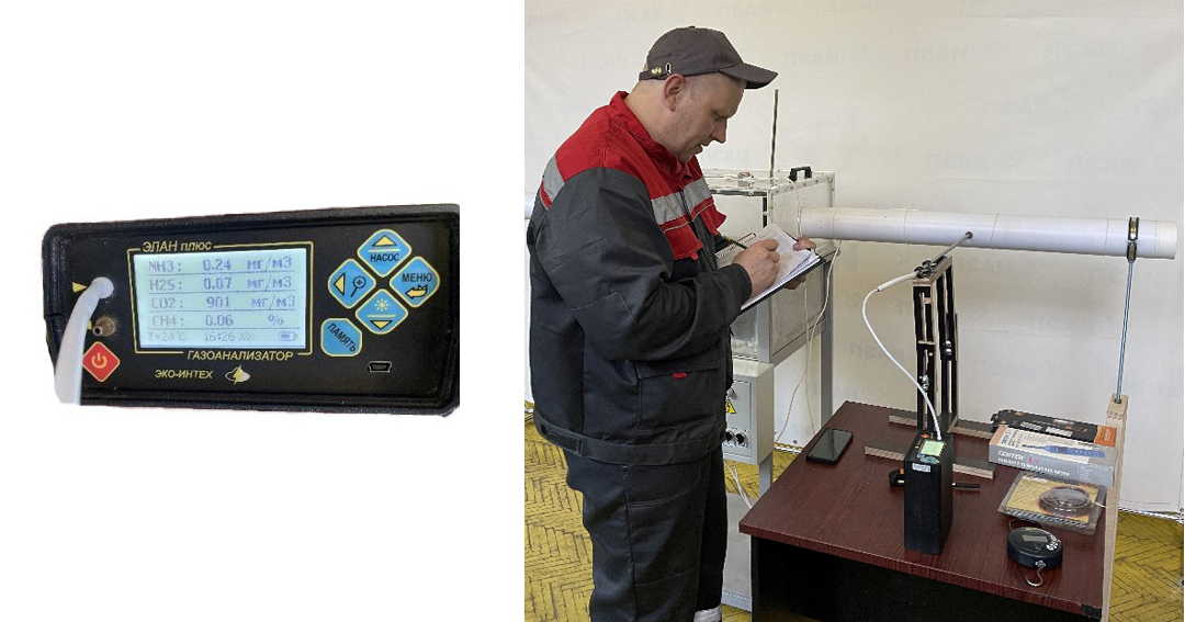 Source: the photographs were taken during the process of measuring gas concentrations using a sampling probe and the gas analyzer ELAN plus in the bioconversion laboratory of the IEEP – branch of Federal Scientific Agroengineering Center VIM by leading researcher E.V. Vasiliev (in the photo researcher V. I. Bazykin) on 15.08.2024.